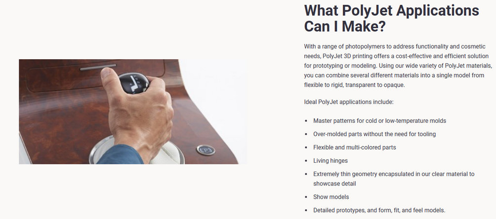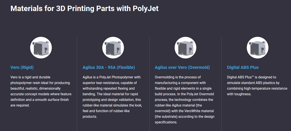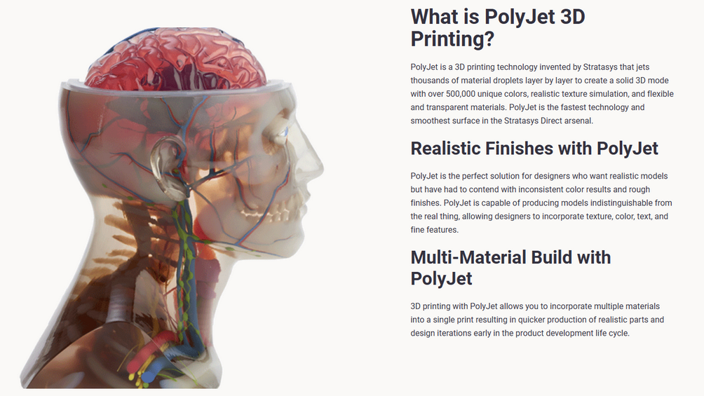 每台PolyJet 3D打印机都可提供高精度,光滑的表面和细节纹理打印。而且,通过将各种特定浓度和微观结构的光敏聚合物结合在一起,最先进的PolyJet系统可以模拟从塑料,橡胶到人体组织的所有物体,并产生完整的色域。